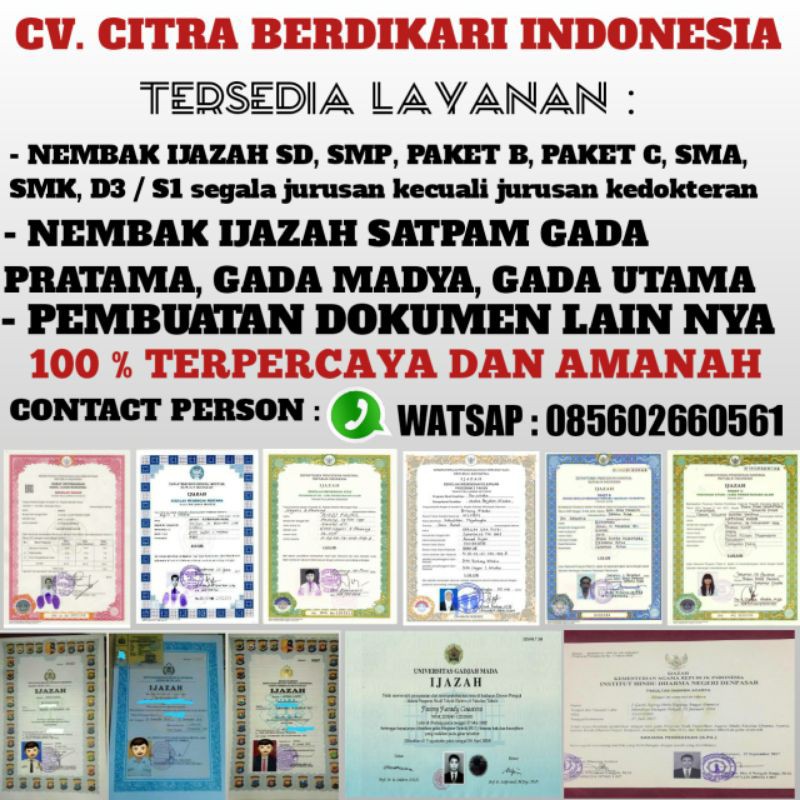 Sehingga pengecekan ijazah dapat dilakukan dengan cara cek ijazah secara online. Sahabat 99, apakah kamu yakin ijazah milikmu adalah ijazah asli? Saya sudah ada sertifikat satpam tpi terbitan dr yayasan di surabaya th 2006 apakah harus mengikuti lagi pelatihan gada pratama klo wilayah kerjanya di bogor mohon petunjuk unknown says: Bujp) dalam mengemban kewenangan kepolisian terbatas. Kemudian untuk ijazah smp dihargai rp 700 ribu, ijazah sma/smk rp 800 ribu, ijazah s1 rp 2 juta, dan ijazah s2 rp 2,5 juta.